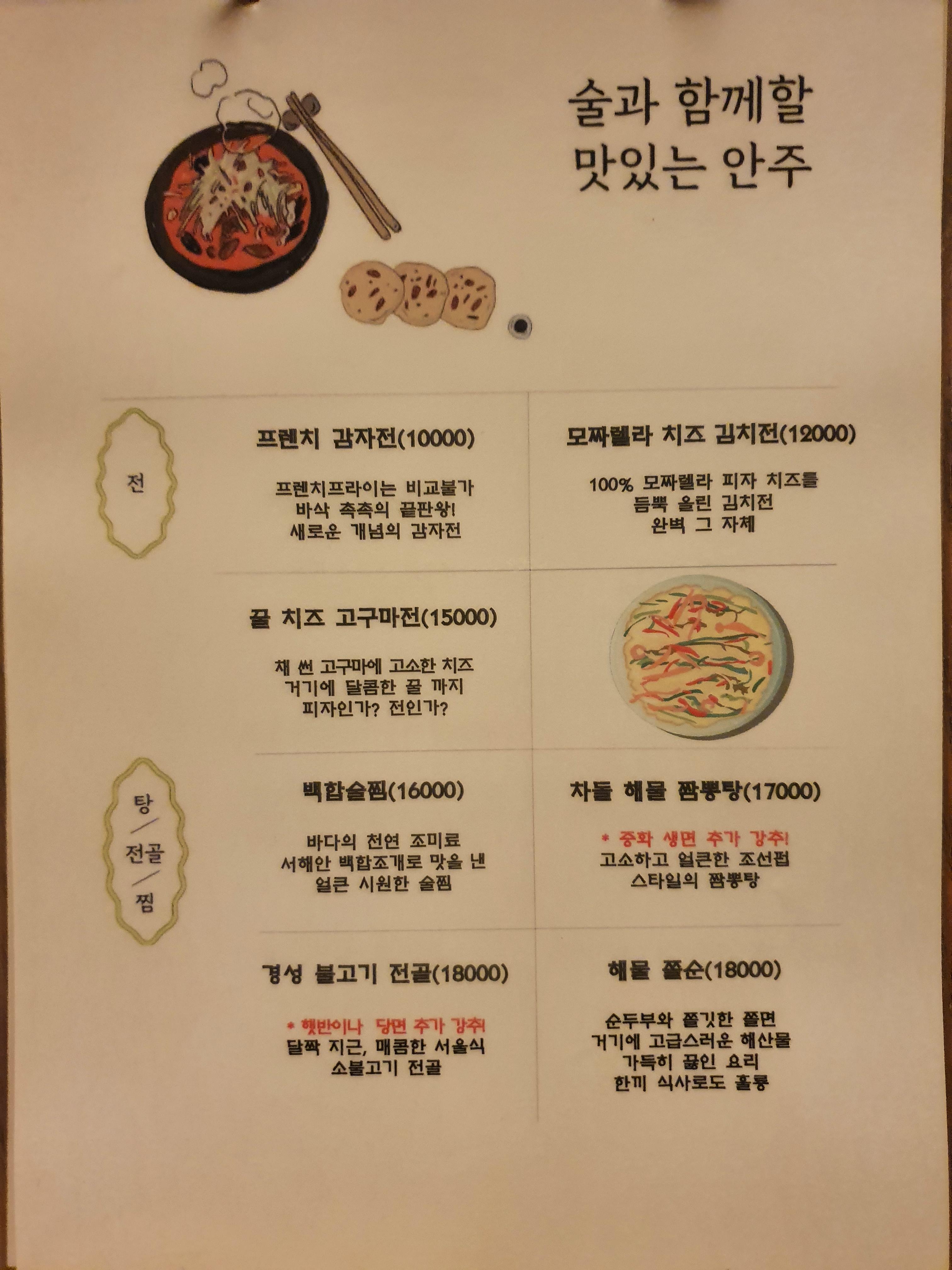 사실 메뉴판 사진을 많이 못찍었습니다. 깜짝 놀래서요 ㅎㅎ 급하게 안주 메뉴판만 찍었습니다.