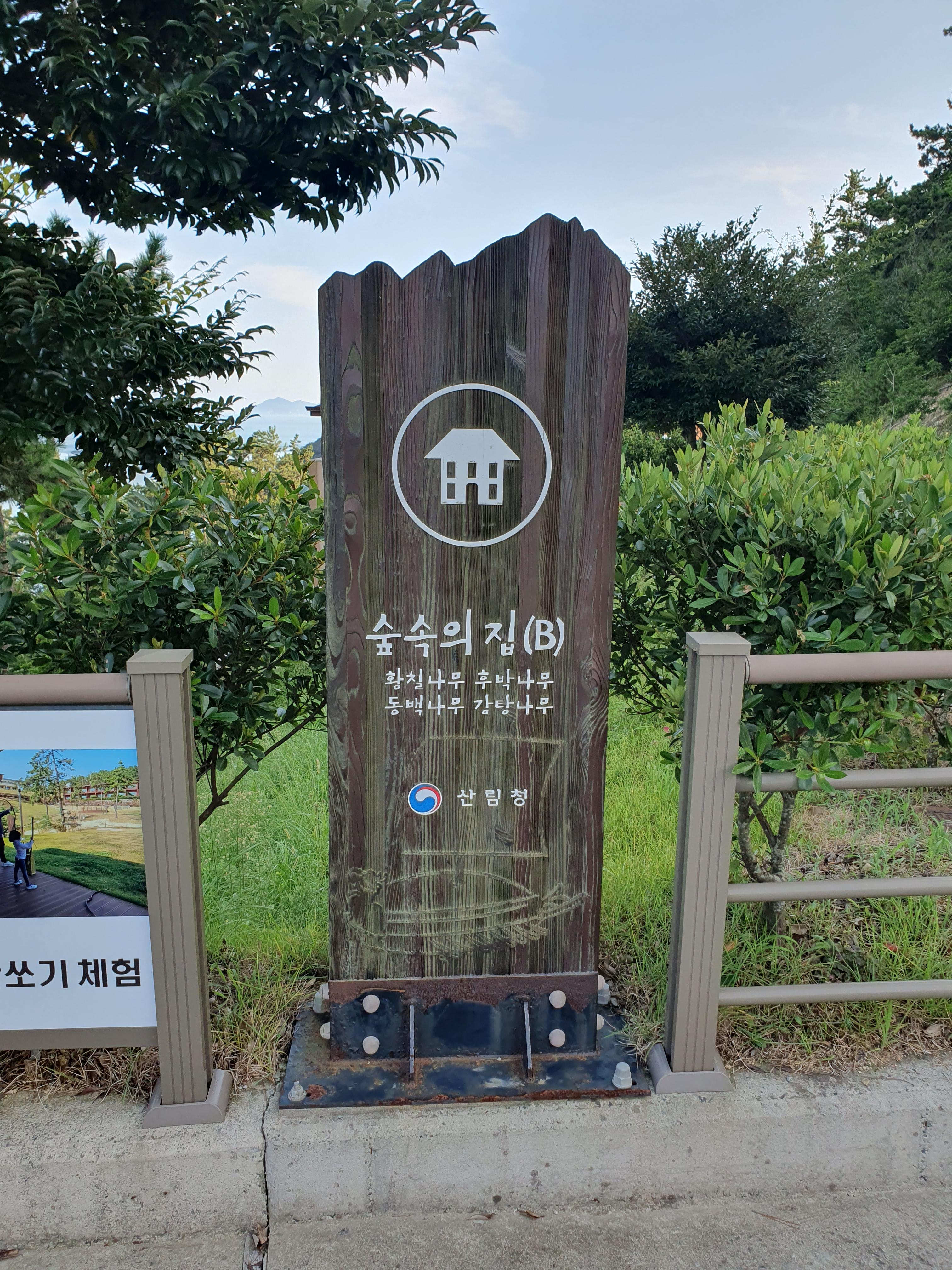 입구 우측에 공간이 있는데 담이 높아 전망이 좋지 않고 그렇다고 이곳에서 바베큐를 할 수 있는 것도 아니여서 아까운 공간 같습니다. (자연휴양림이라 불을 사용하는 바베큐는 금지입니다.)