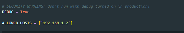 /config/settings.py 파일을 열고 "ALLOWED_HOSTS = []"부분을 찾습니다. (처음 부분에 있습니다.)