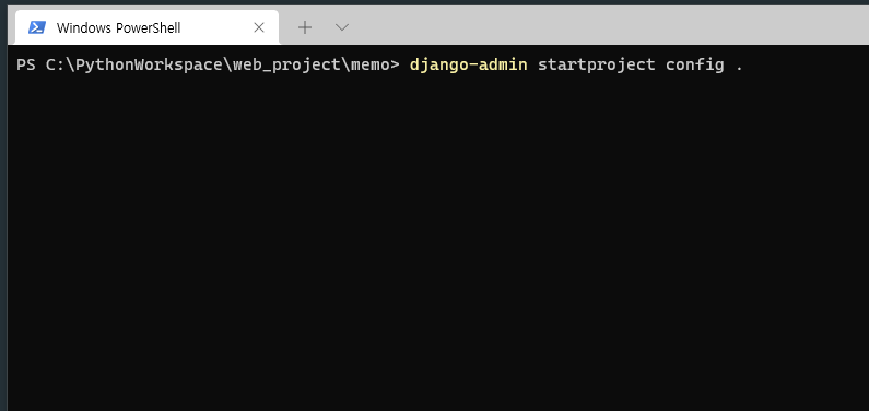 "django-admin startproject config ."을 입력합니다.