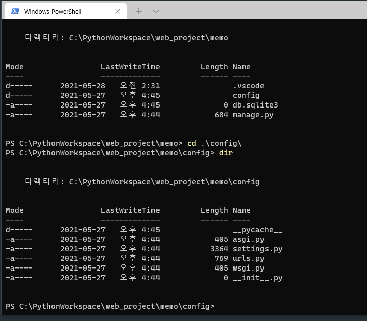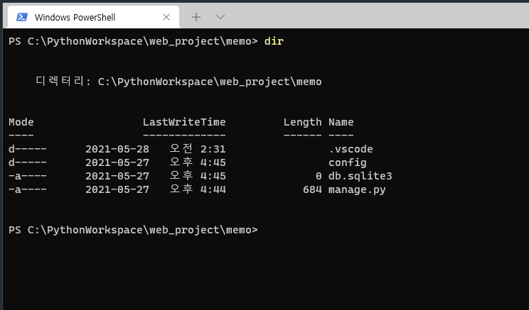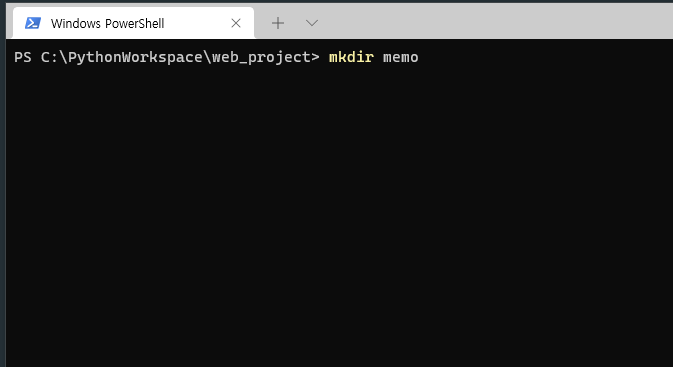 새로 만든 memo 폴더로 이동한 다음 django 프로젝트 생성을 위해 아래와 같이