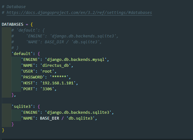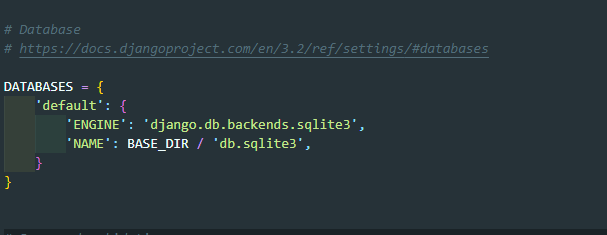 우선 /config/settings.py를 열어 "DATABASES" 구문을 찾습니다.