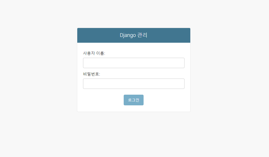 다음으로 서버를 실행하고 브라우저 주소창에 "http://127.0.0.1:8000/admin" 입력하고 이동합니다.