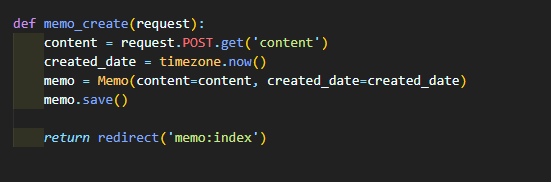 memo/views.py에 memo_create함수를 추가합니다.