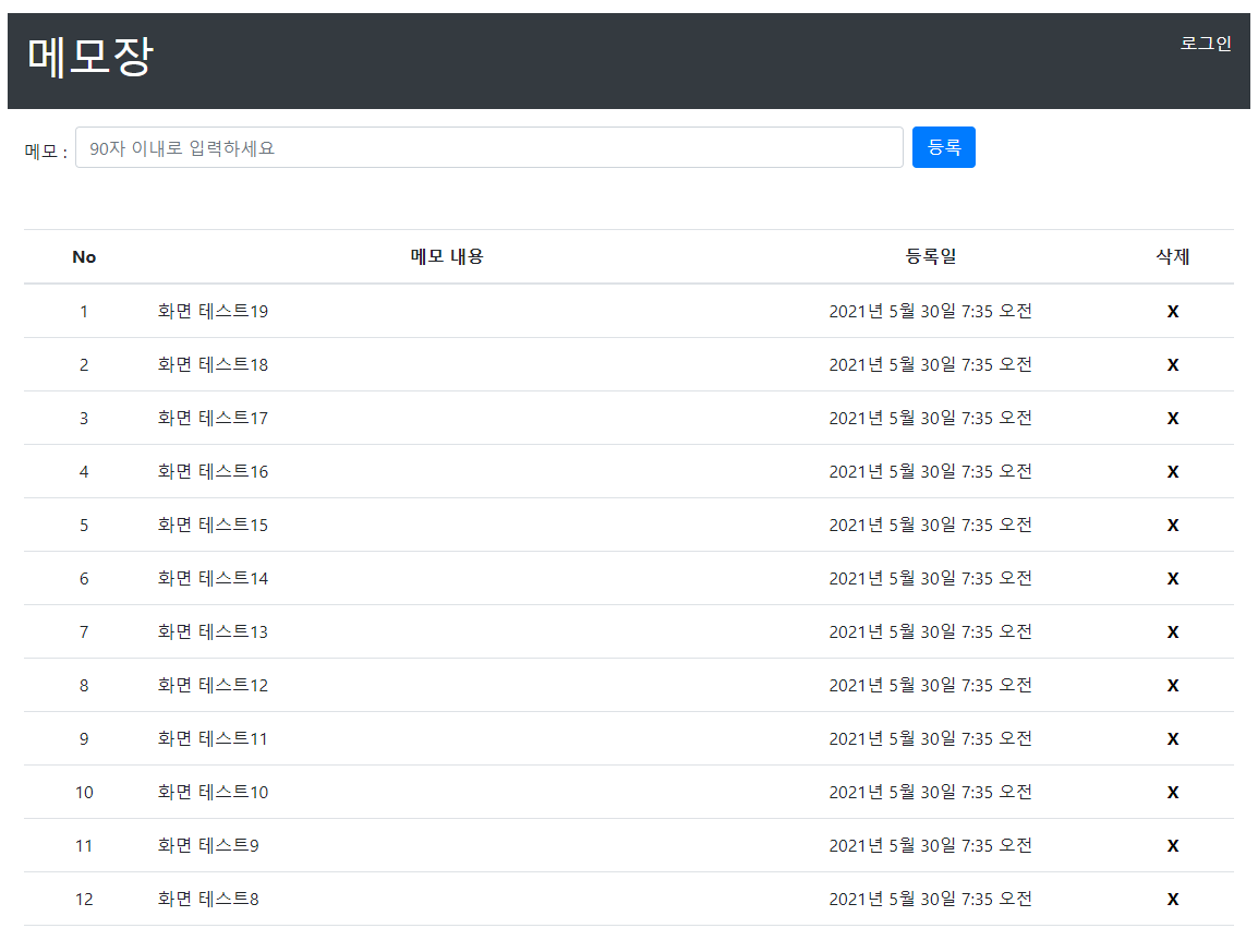 그 하단에는 메모를 등록할 수 있는 form을 위치시키고 그 하단에는 메모 내용을 보여줍니다.