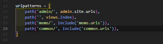 다음으로 config/urls.py에 common으로 들어오는 요청을 common/urls.py에 작성해야 합니다.