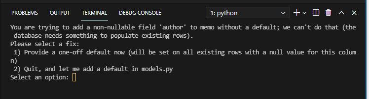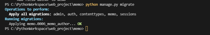 따라서 Memo 모델에 작성자를 추가하고 migration 해야 합니다.