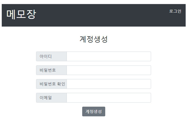 이떄 빈칸 및 중복, 필드 길이 등을 확인하게 되고 이상이 없으면 데이터 저장 후 로그인 처리하여 memo:index 페이지로 redirect합니다.