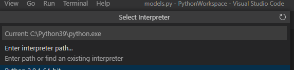 좌측 하단의 "Python XXX" 라고 표시된 부분을 클릭한다.