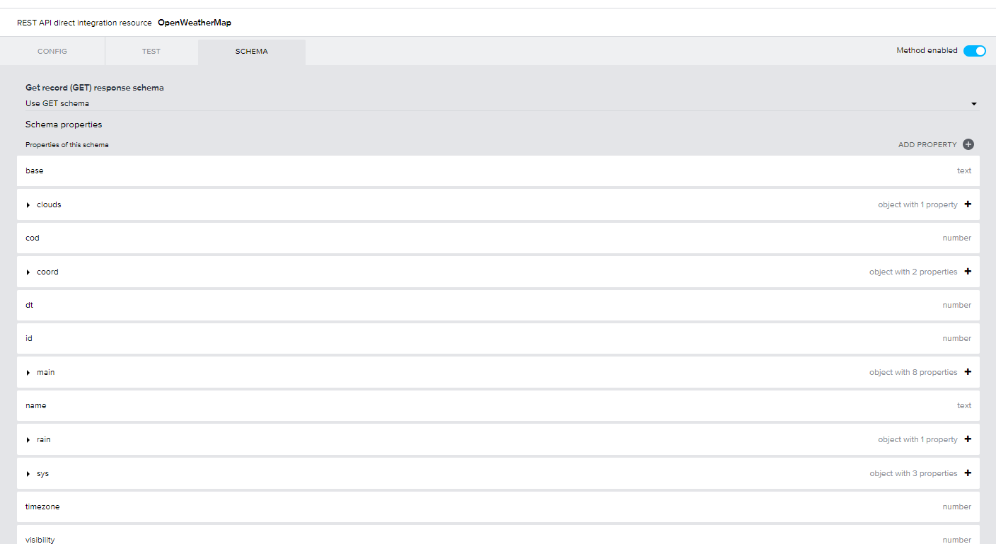 다음으로 SET SCHEMA FROM RESPONSE를 선택하여 응답값에 대한 스키마를 저장합니다.