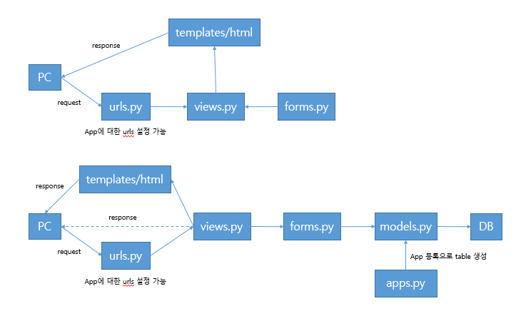 django를 공부하면서 설명하는 흐름을 정리해보았습니다.