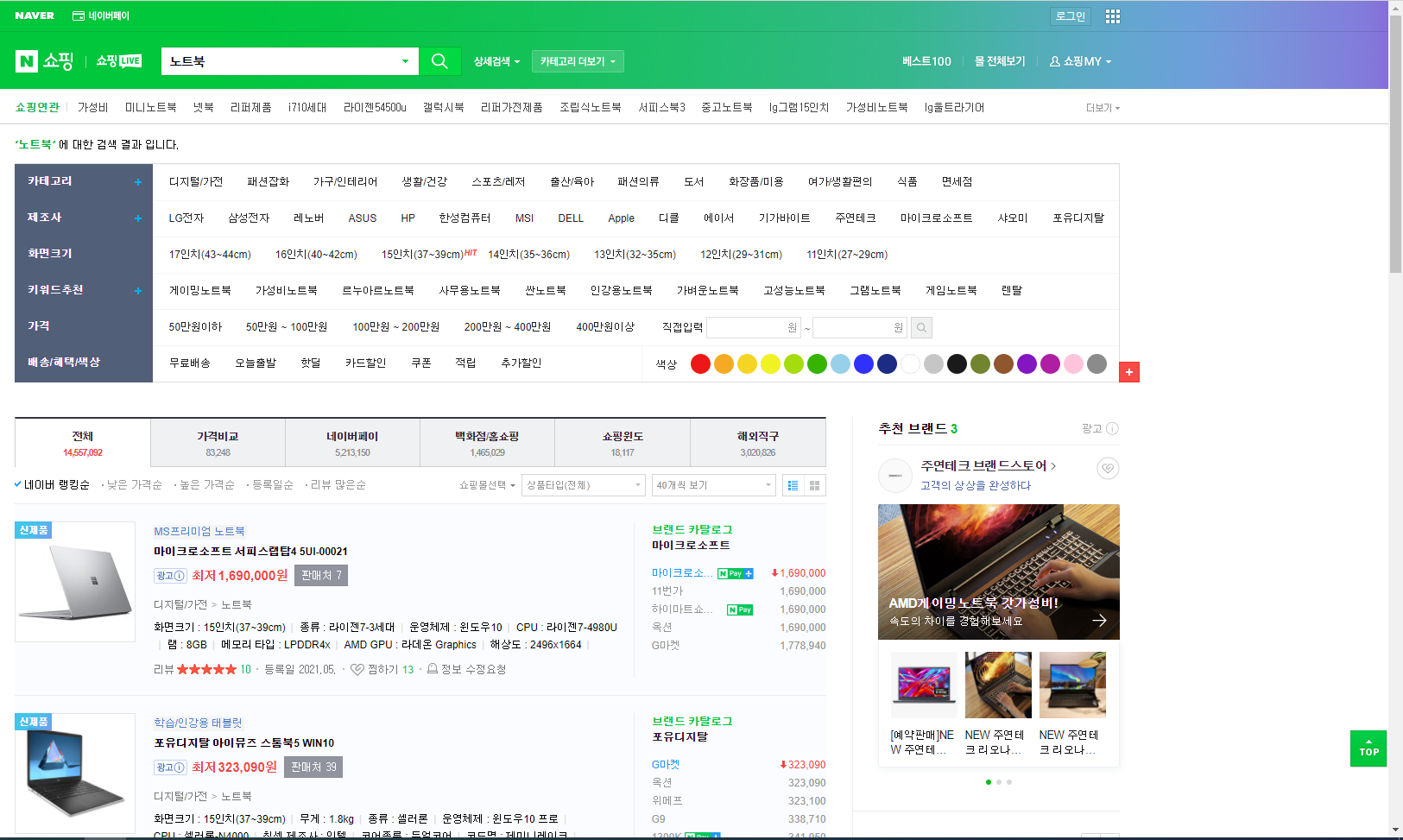 목표는 네이버 쇼핑 페이지에 들어가 노트북이라고 검색하고 결과 페이지에서 스크롤을 계속 내려 검색 결과 끝까지 가보도록 하겠습니다.