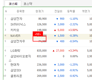 2021.05.13 - [RPA/Python] - [BeautifulSoup] 기업 시가총액 순위, 엑셀/CSV로 저장