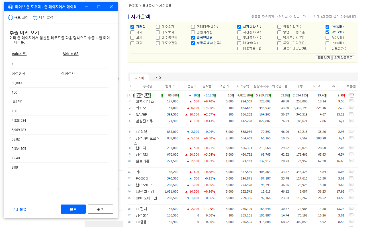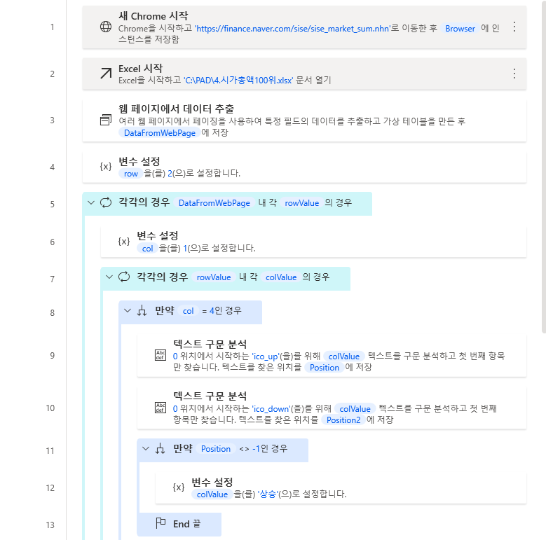 [Power Automate Desktop] 기업 시가총액 순위, 엑셀 저장 (Simple Version)